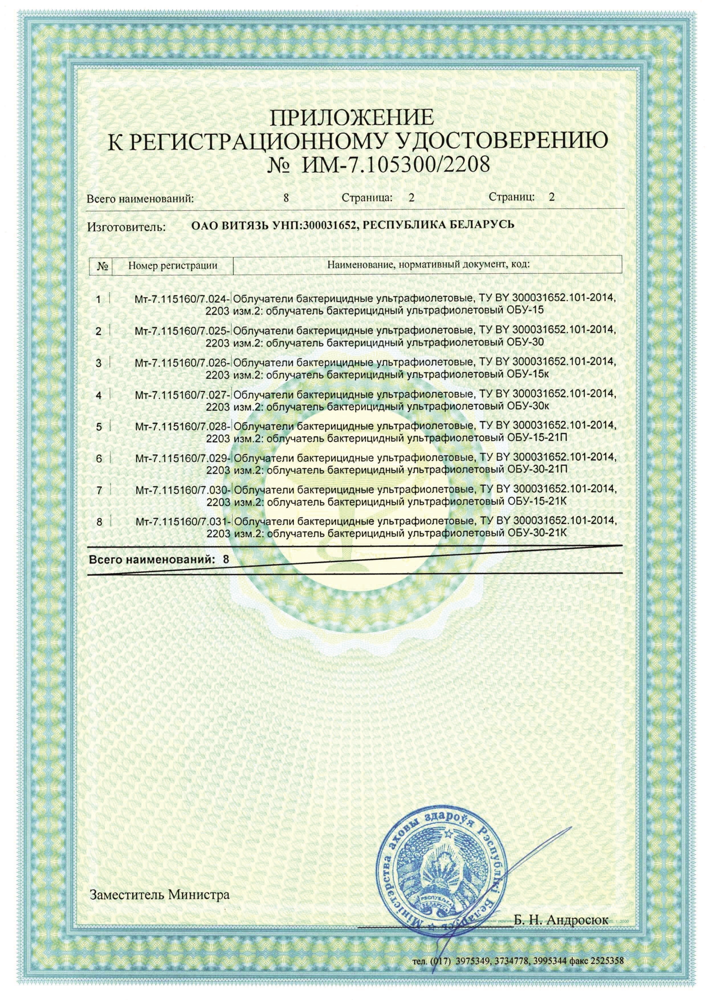 Для данных моделей облучателя значения величин приведены при использовании соответствующих ламп, не уступающих по качеству лампам изготовителя. Для ОБУ-15-21К – лампы мощностью по 15 Вт.