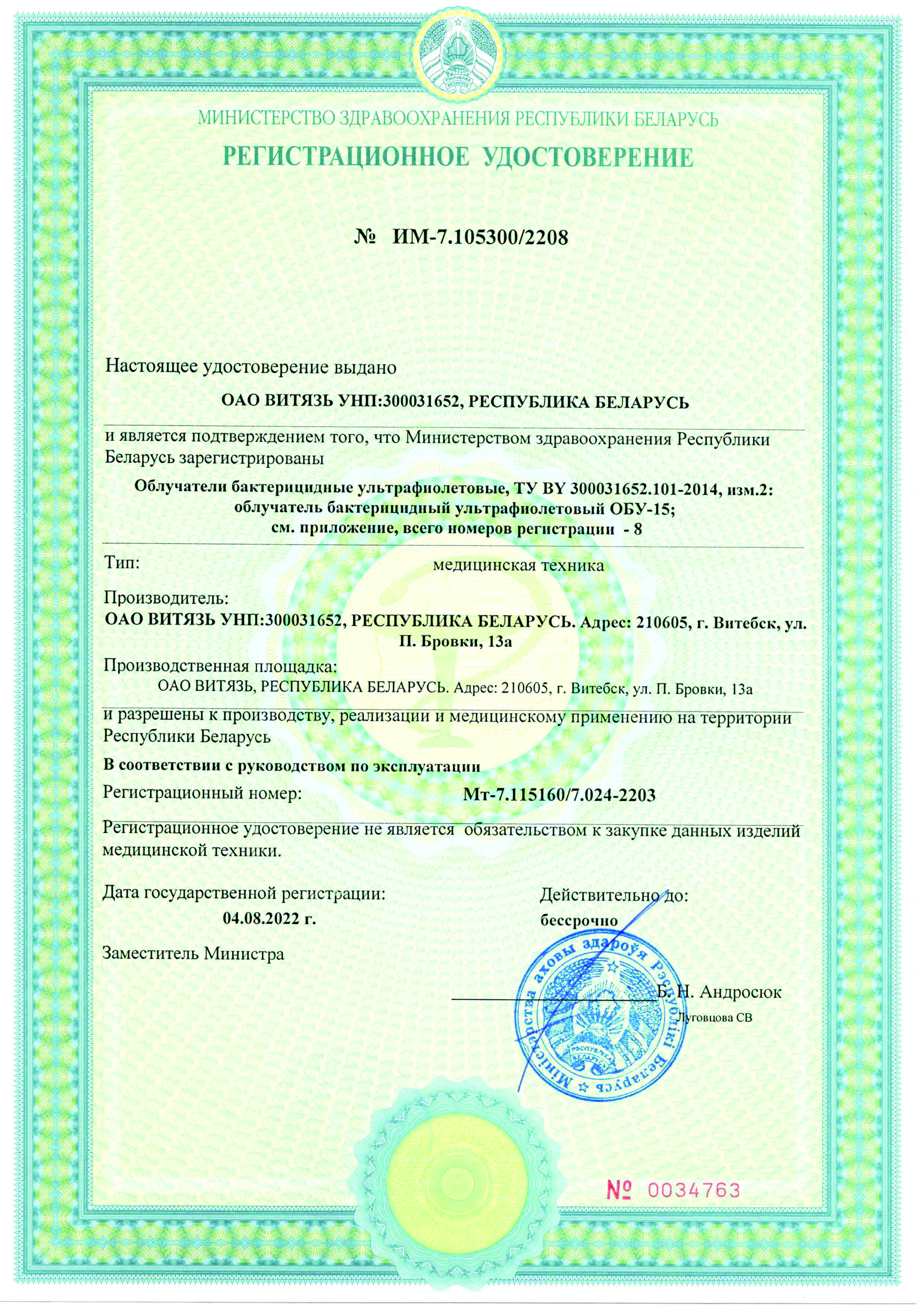 Облучатель может применяться для снижения микробной обсемененности воздуха в помещениях в отсутствии людей в качестве заключительного звена в комплексе санитарно-гигиенических мероприятий.