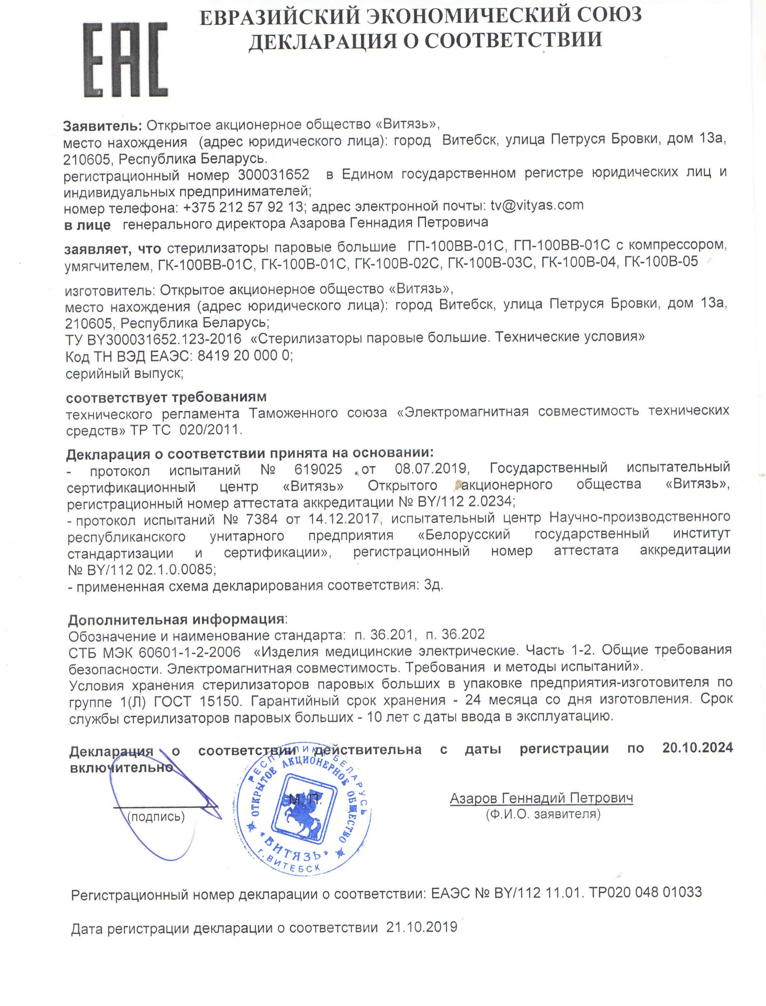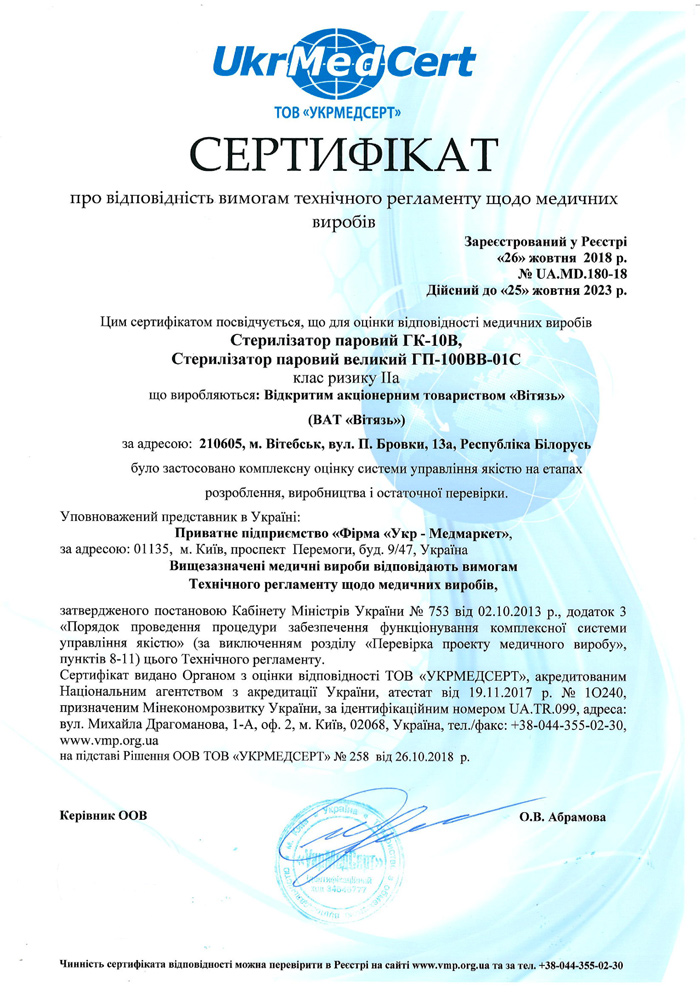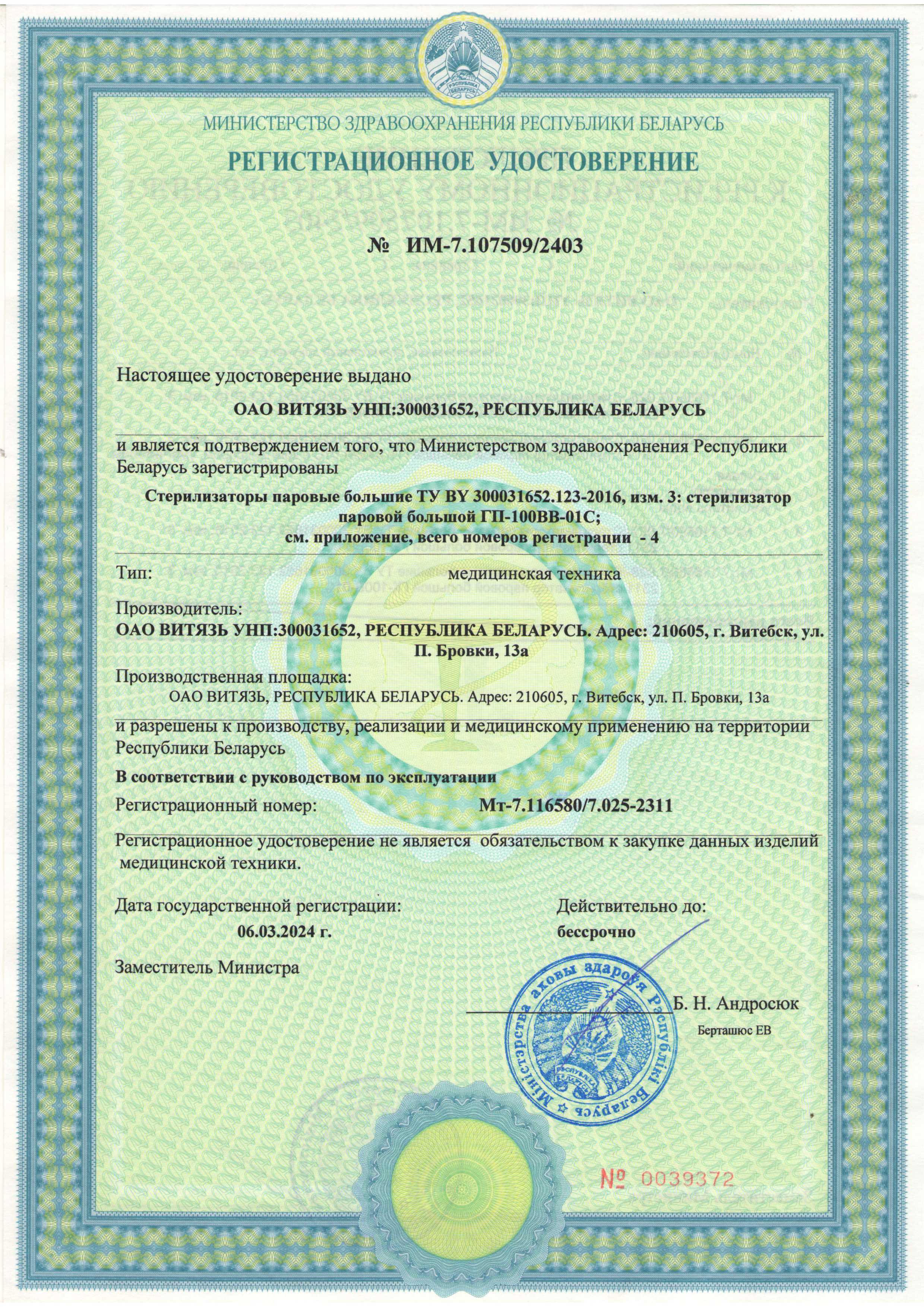 Стерилизатор соответствует требованиям ГОСТ 15150-69 УХЛ4.2 по виду климатического исполнения и ГОСТ 20790-93 группы 1 по механическим воздействиям. В соответствии с ГОСТ 20790 в зависимости от последствий отказа в процессе использования относится к классу В.