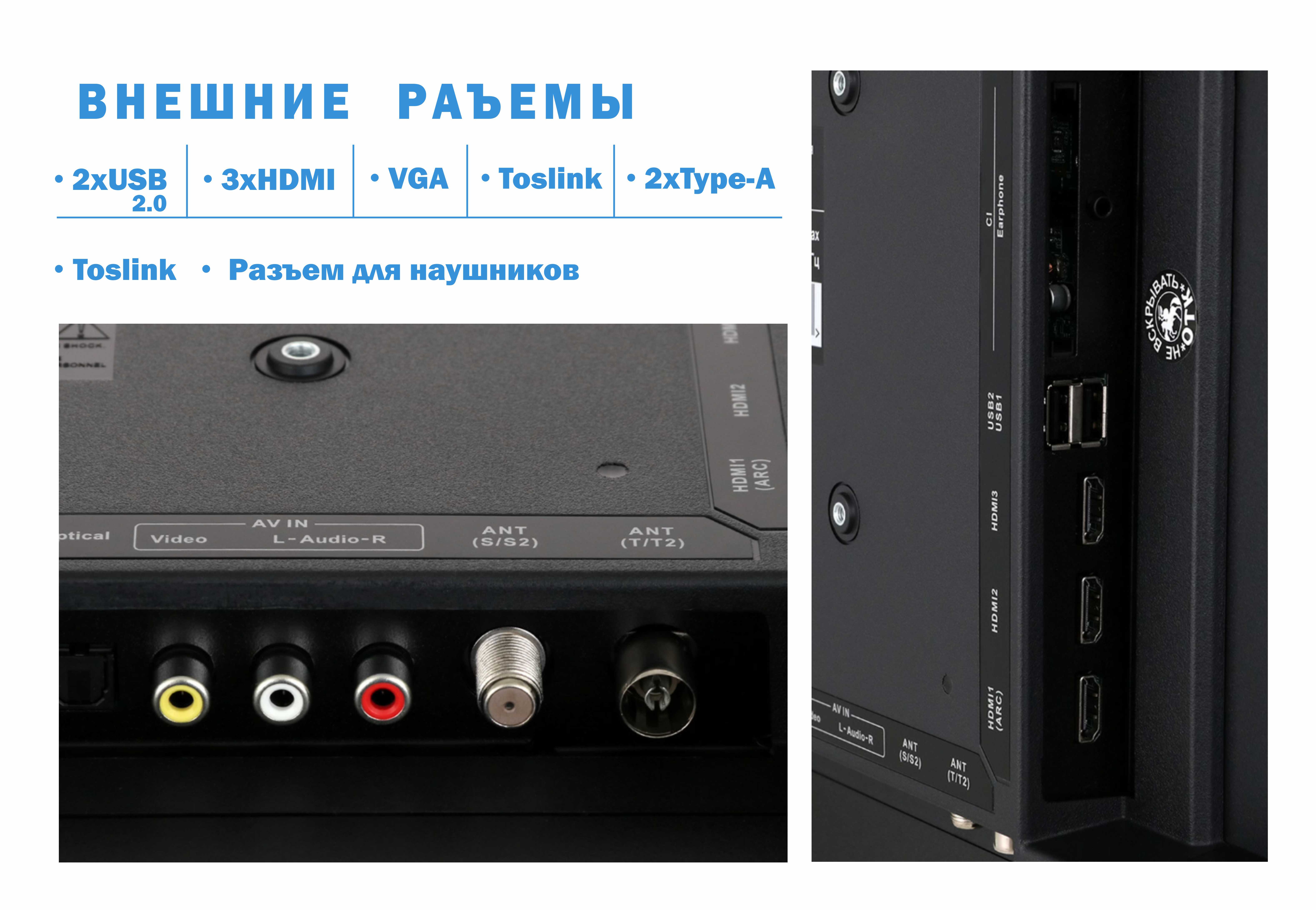 Вход HDMI 3 шт, Версия HDMI 1.2, Порт USB 2.0 тип A 1 шт, Выход RCA аудио, Вход коаксиальный цифровой, Выход оптический (Toslink), Выход коаксиальный цифровой, Разъем для наушников 3.5 мм