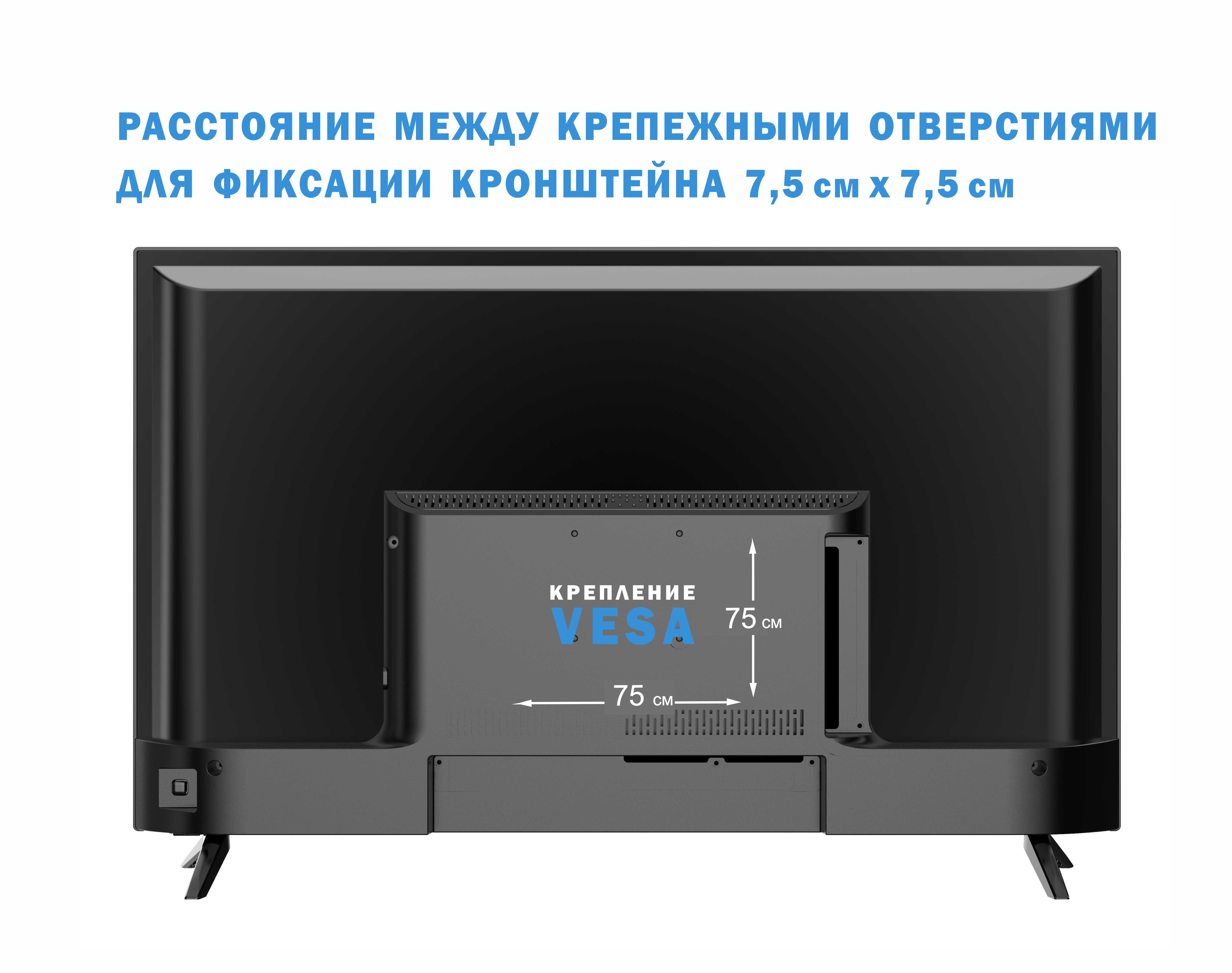 IPS-экран прибора с соотношением сторон 16:9, разверткой 60 Гц и углами обзора 178° воспроизводит изображения разрешением 1366х768 пикселей (HD). Яркость кадров достигает 250 нит, типовое время отклика ЖК-панели — 8 мс. Процессор ARM Cortex A-55 обрабатывает изображения, способствует повышению детализации в каждом кадре. Цифровое шумоподавление повышает качество видеоконтента при просмотре телевизионных каналов. Телегид (EPG) обеспечивает гибкость управления цифровым контентом.