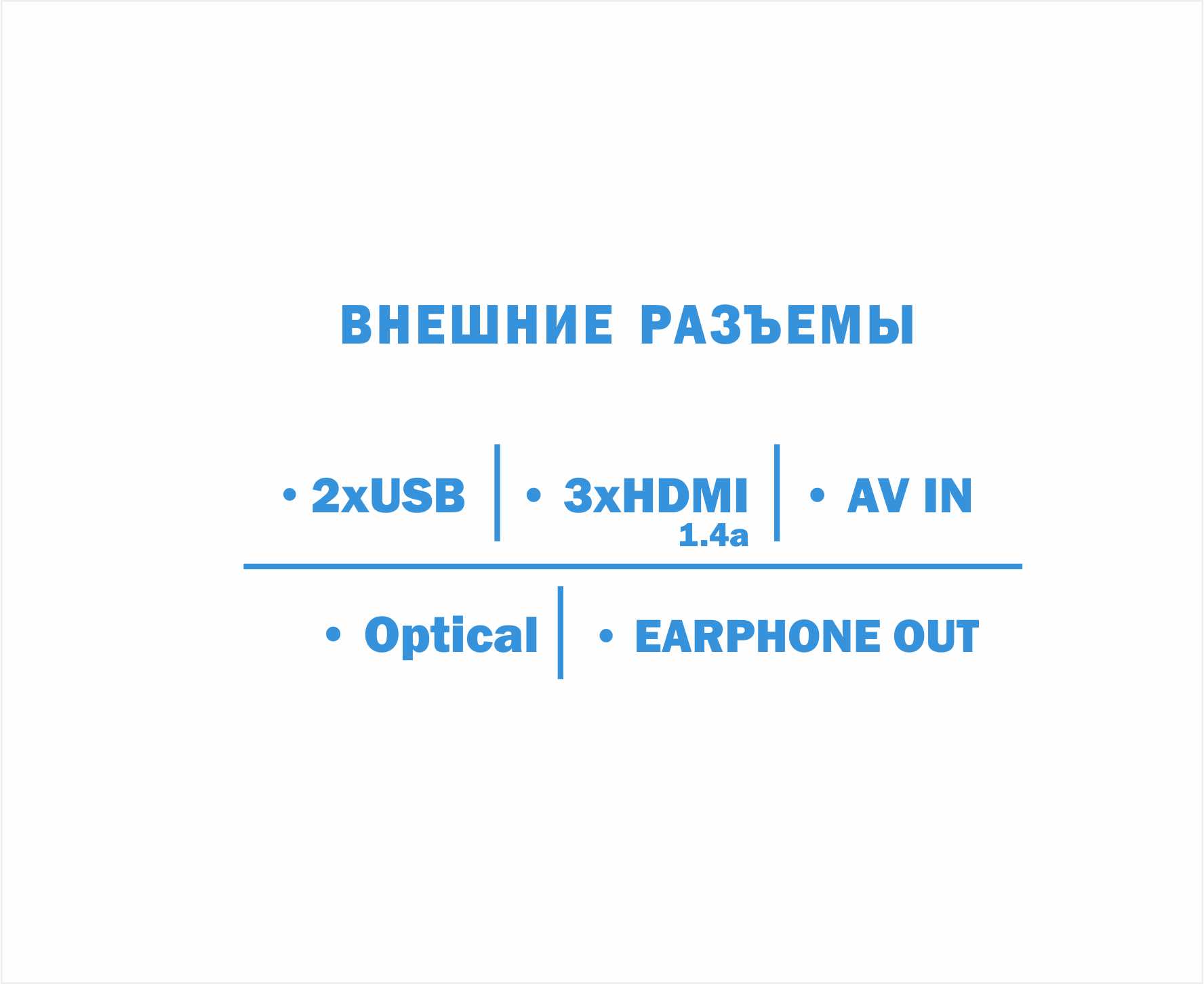 Вход HDMI х3, , Порт USB 2.0 тип A х2, Выход оптический (Toslink), Слот для CI / PCMCIA, Разъем для наушников 3.5 мм
