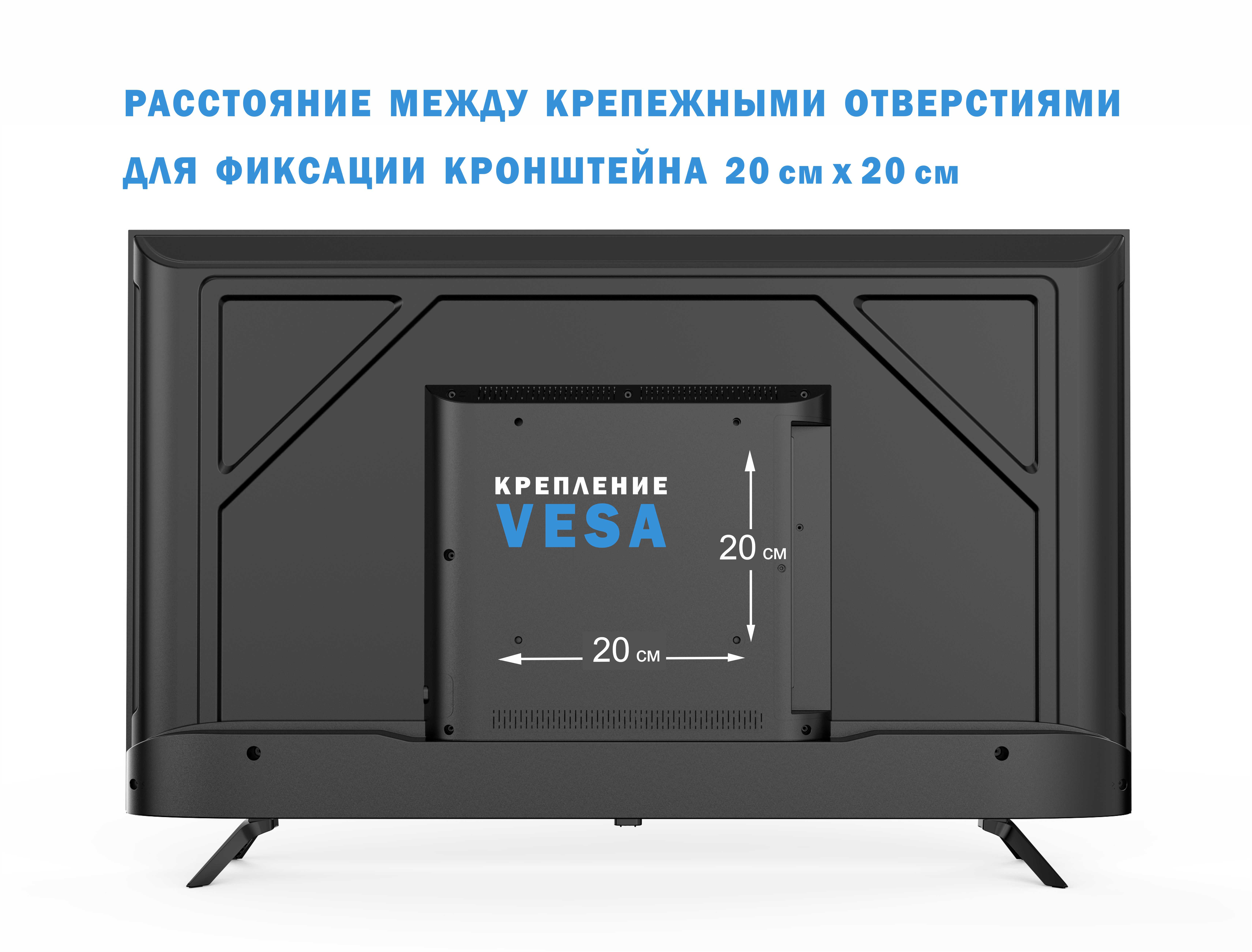LED-дисплей диагональю 43" с цифровым шумоподавлением обеспечивает качественное изображение в насыщенных и естественных цветах. Экран формата 16:9 с частотой обновления 60 Гц транслирует динамические сцены без зависаний. Изделие с креплением VESA 200x200 фиксируется на стене за счет кронштейна, который приобретается отдельно. В комплектацию входит подставка шириной 22,3 см для настольного размещения. Конструкция габаритами 55,6х95,6х8,7 см весит 6,2 кг. Параметры с учетом ножек-опор увеличиваются до 60,9х22,3х95,6 см и 8,2 кг.