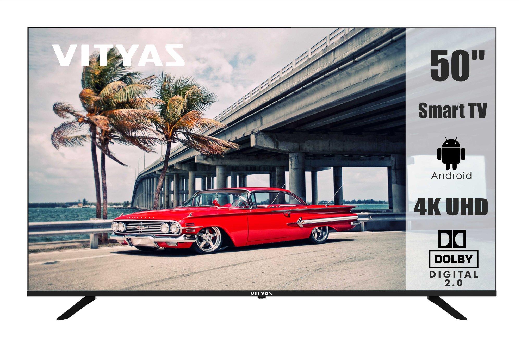 За беспроводное соединение отвечает модуль Wi-Fi. В устройство встроены интерфейсы LAN, Toslink, RCA, 3,5 мм, два порта USB 2.0 типа А и два — HDMI версии 1.2. LED-дисплей диагональю 50" с цифровым шумоподавлением обеспечивает детализированное изображение с разрешением 4K Ultra HD. Экран формата 16:9 функционирует с частотой обновления кадров 60 Гц, что исключает зависание при трансляции динамических сцен. Два динамика Dolby Digital 2.0 по 8 Вт гарантируют глубокое и чистое звучание.