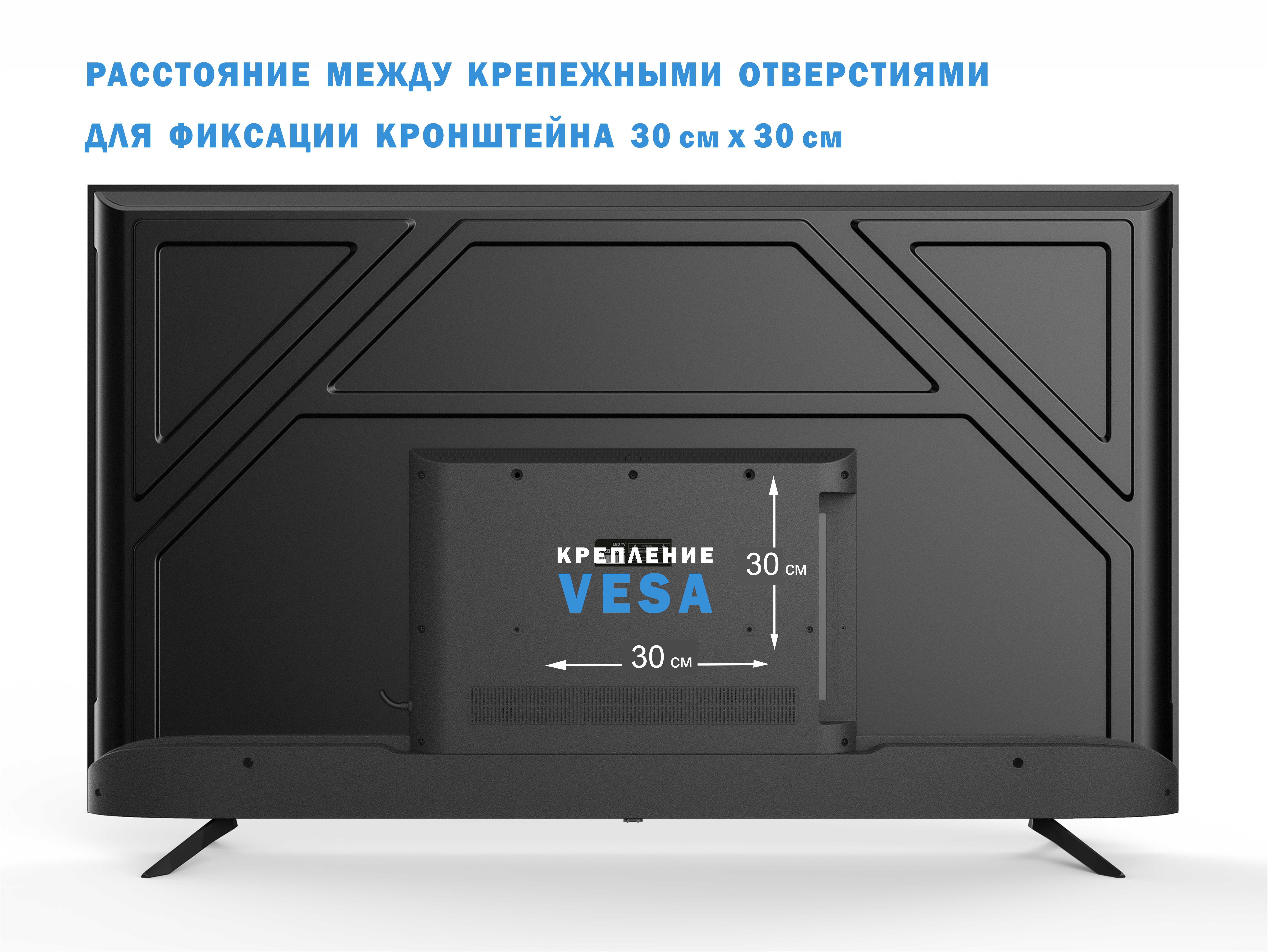 Прибор с потребляемой мощностью 92 Вт работает от сети 220 В. Изделие габаритами 70х111х8 см и весом 9,3 кг монтируется настенным или настольным способом. Для монтажа используется кронштейн VESA 300х300, который приобретается отдельно, или подставка шириной 22,8 см, которая входит в комплектацию. С учетом ножек-опор параметры равны 71,2х111х8 см и 11,4 кг.